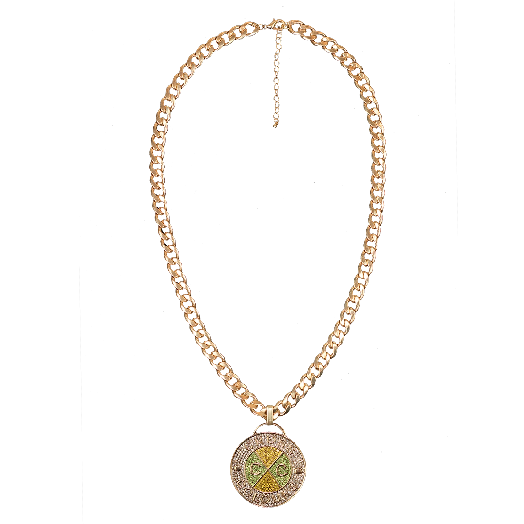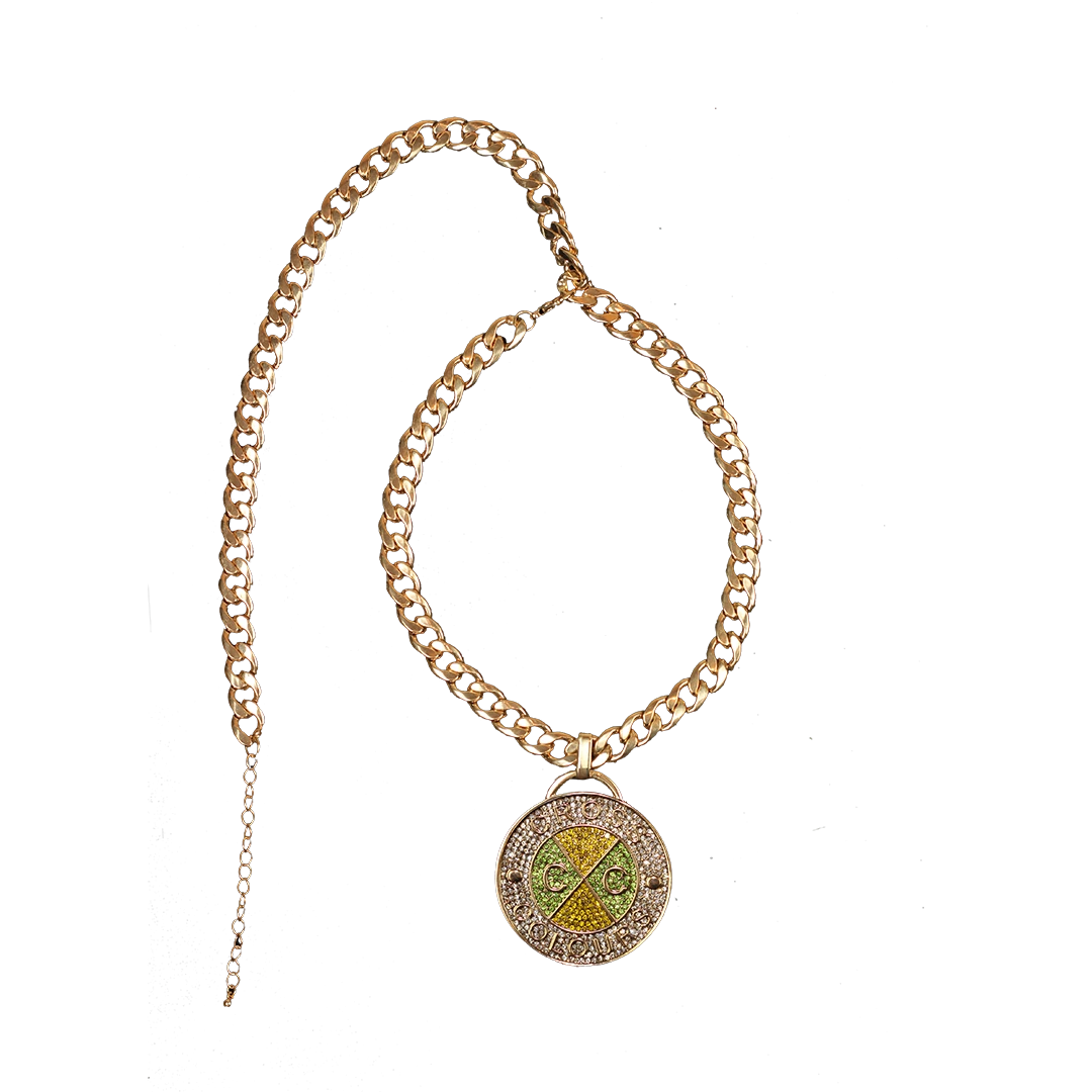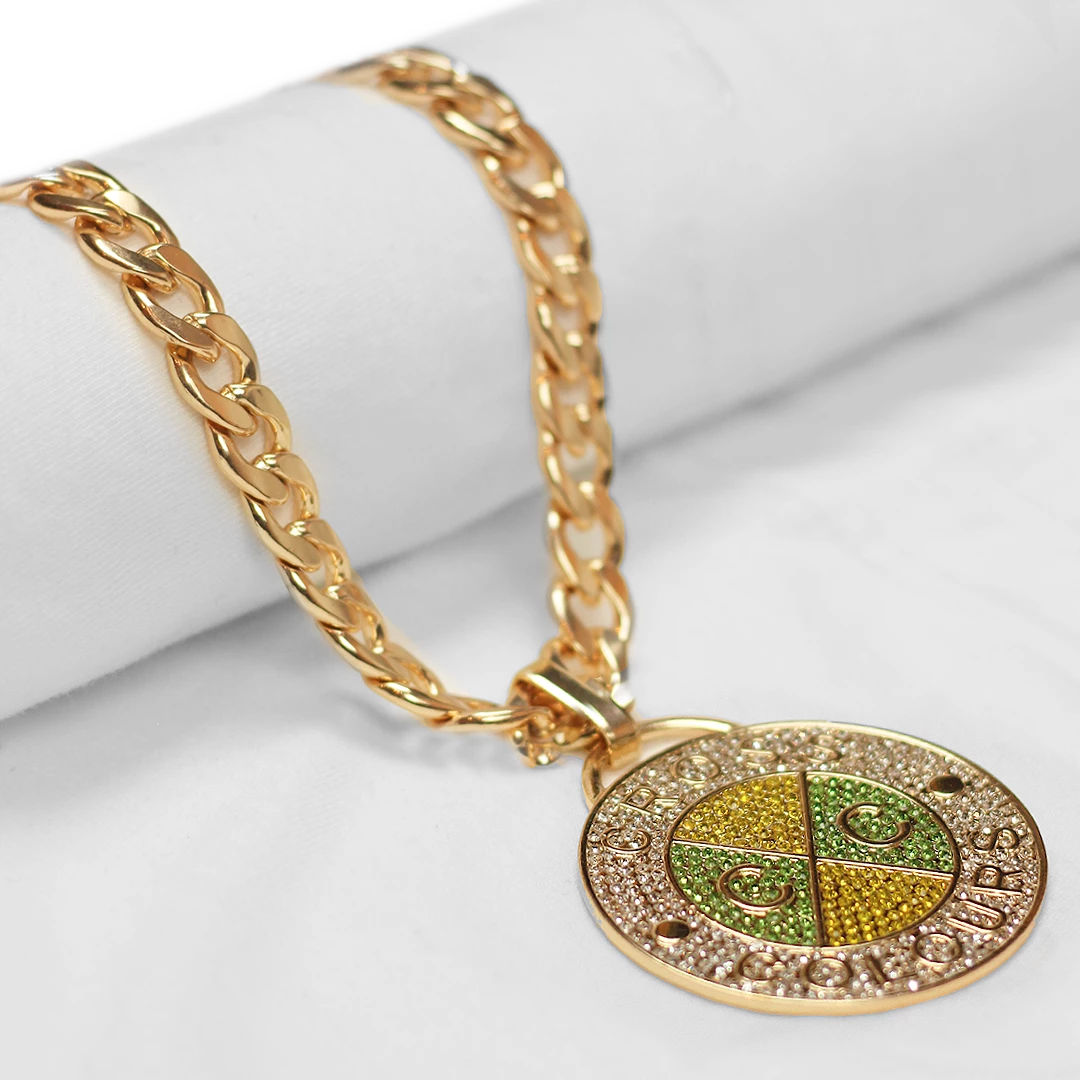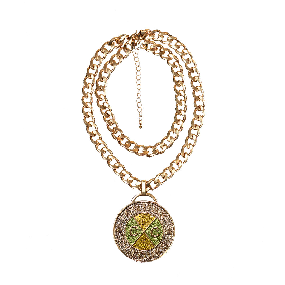 Original Cross Colours classic medallion with encrusted crystals and Cuban chain link. Can be worn as a chain or a choker. Imported.