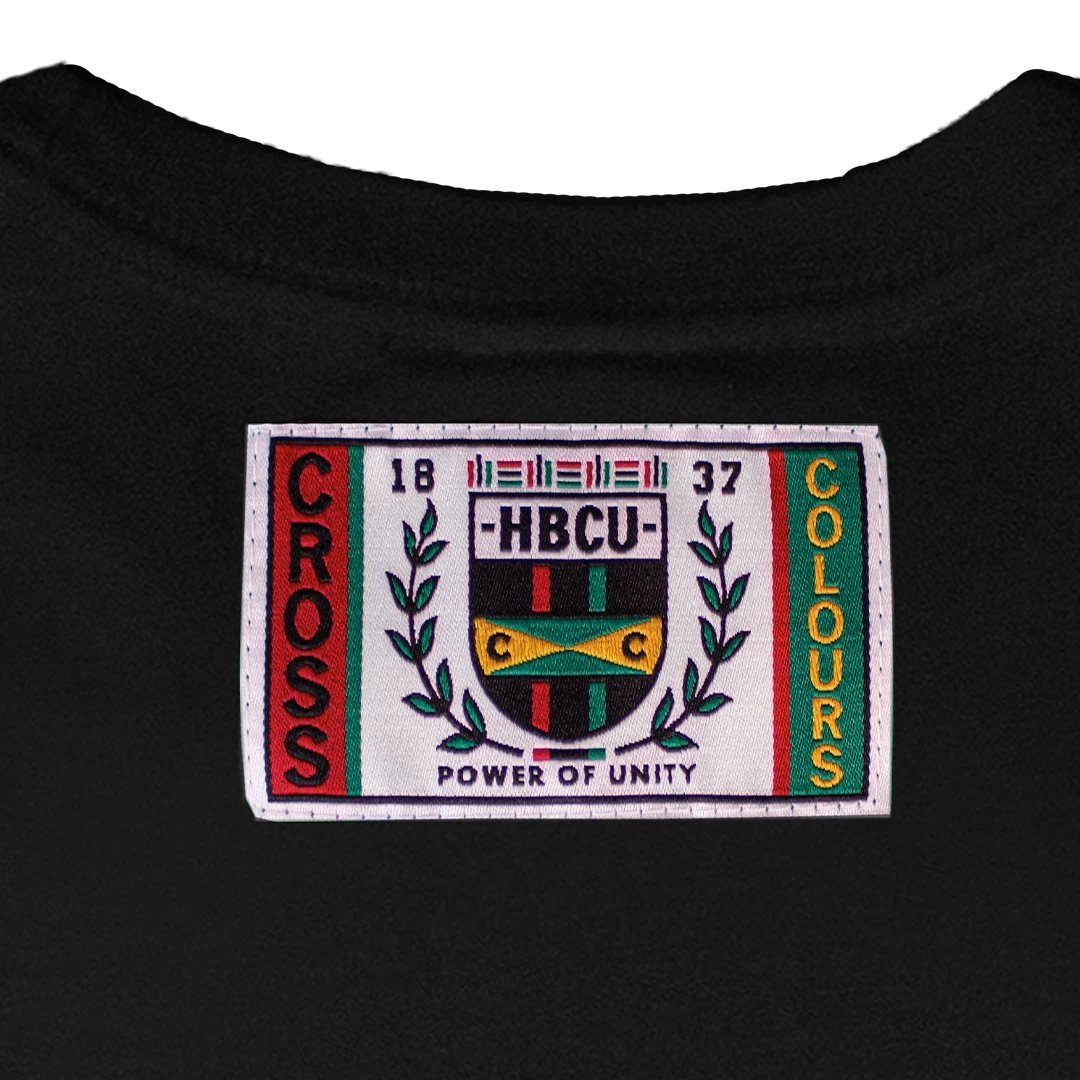 Cross Colours HBCU Flag graphic tee shirt. Woven Cross Colours label sewn at the back.
