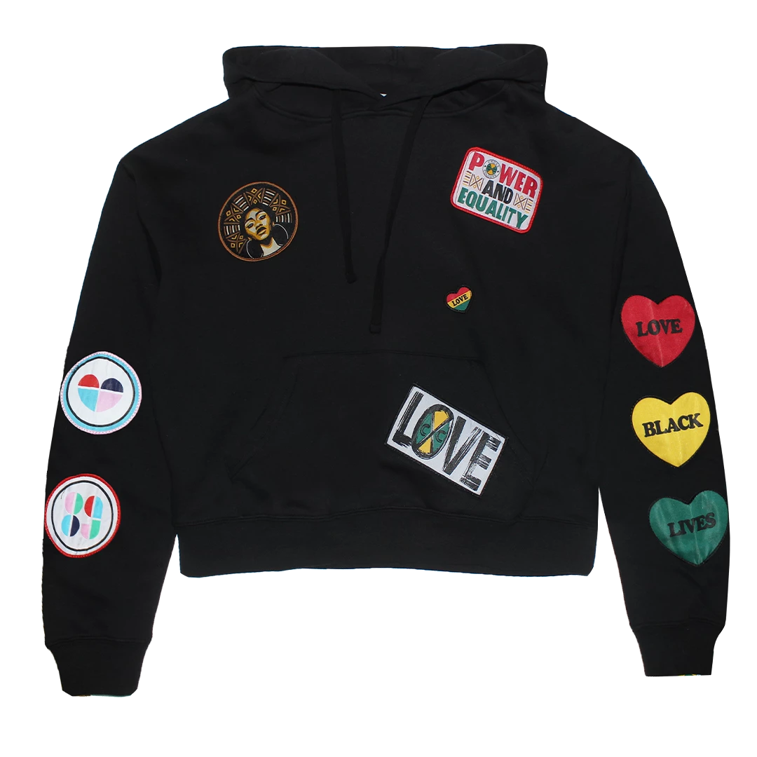 Crop Hoodie with orignal Cross Colours patches; original Cross Colours woven label sewn on the hood