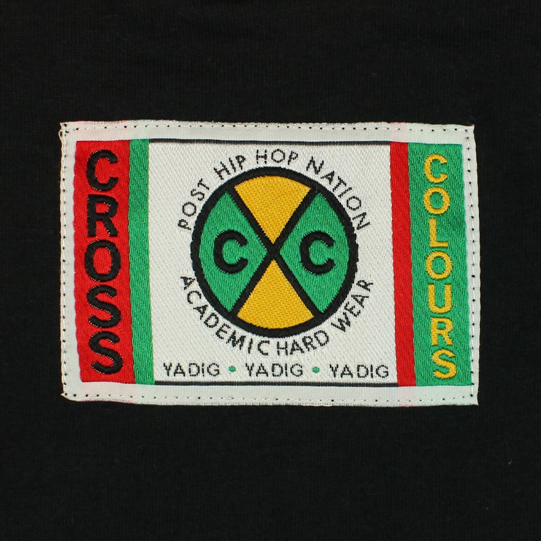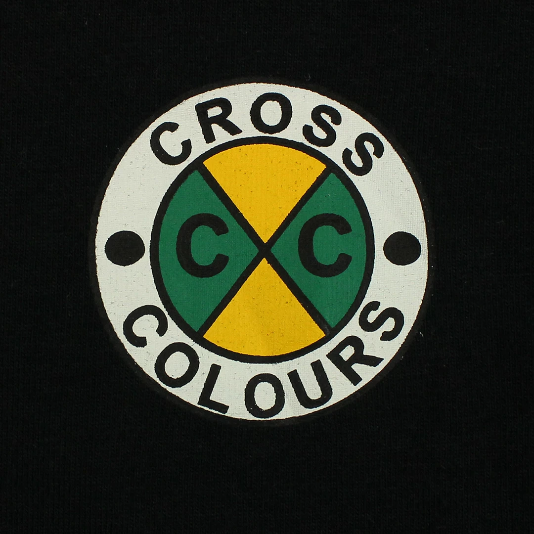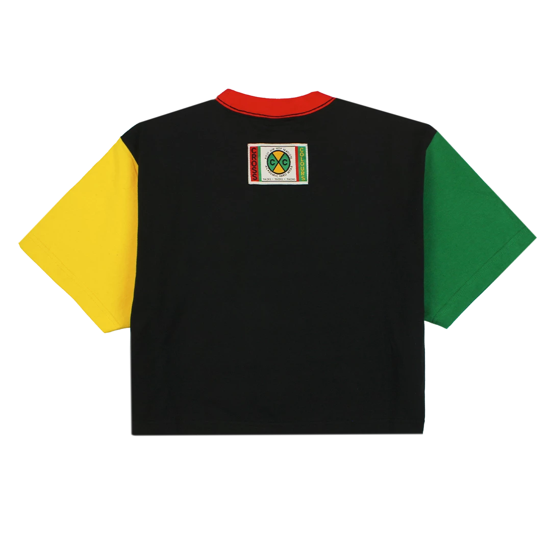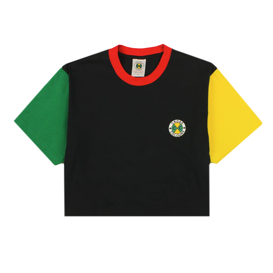 Retro color block crop tee shirt with Cross Colours embroidered logo on the front; original Cross Colours woven label sewn on the back.